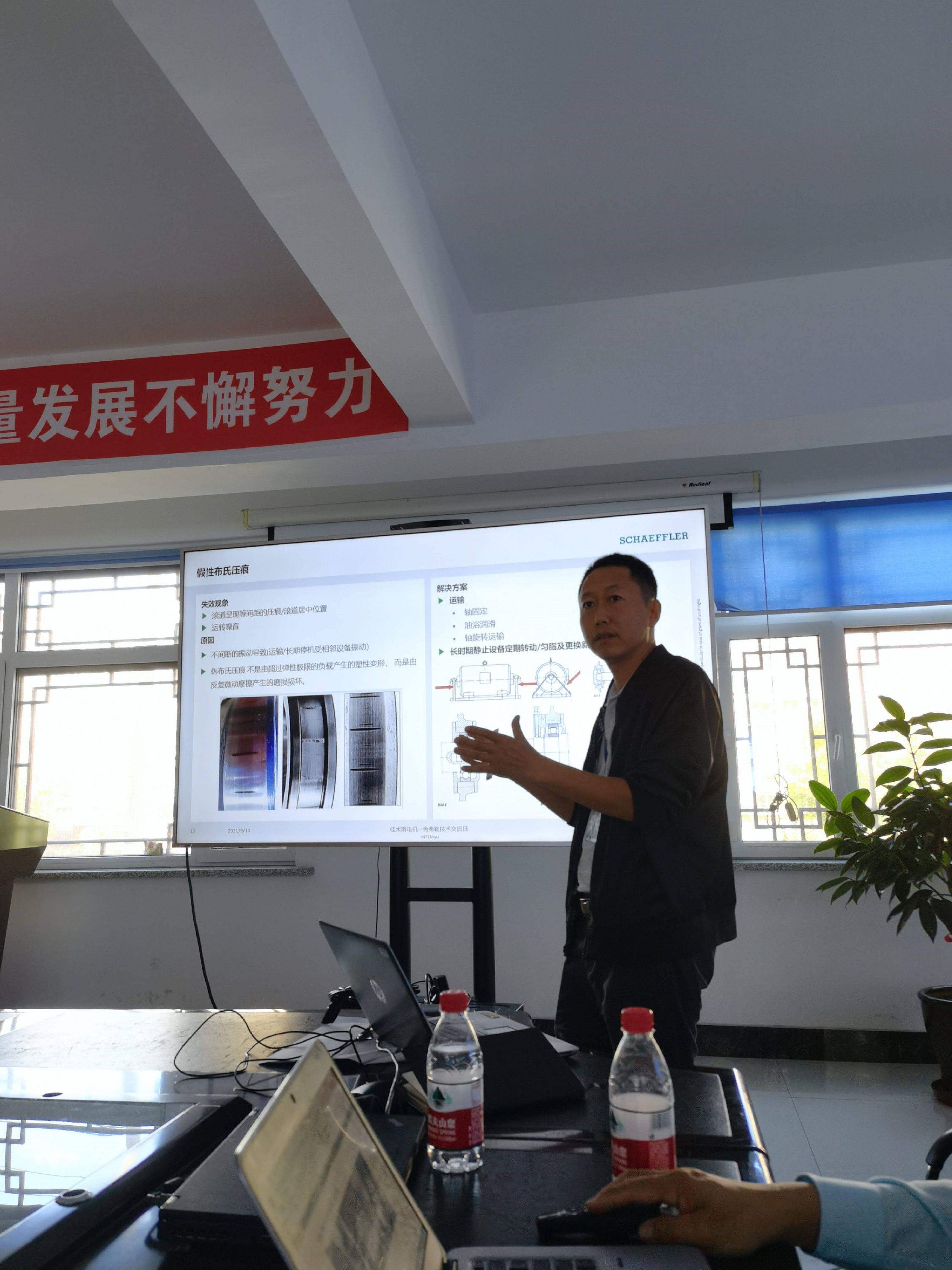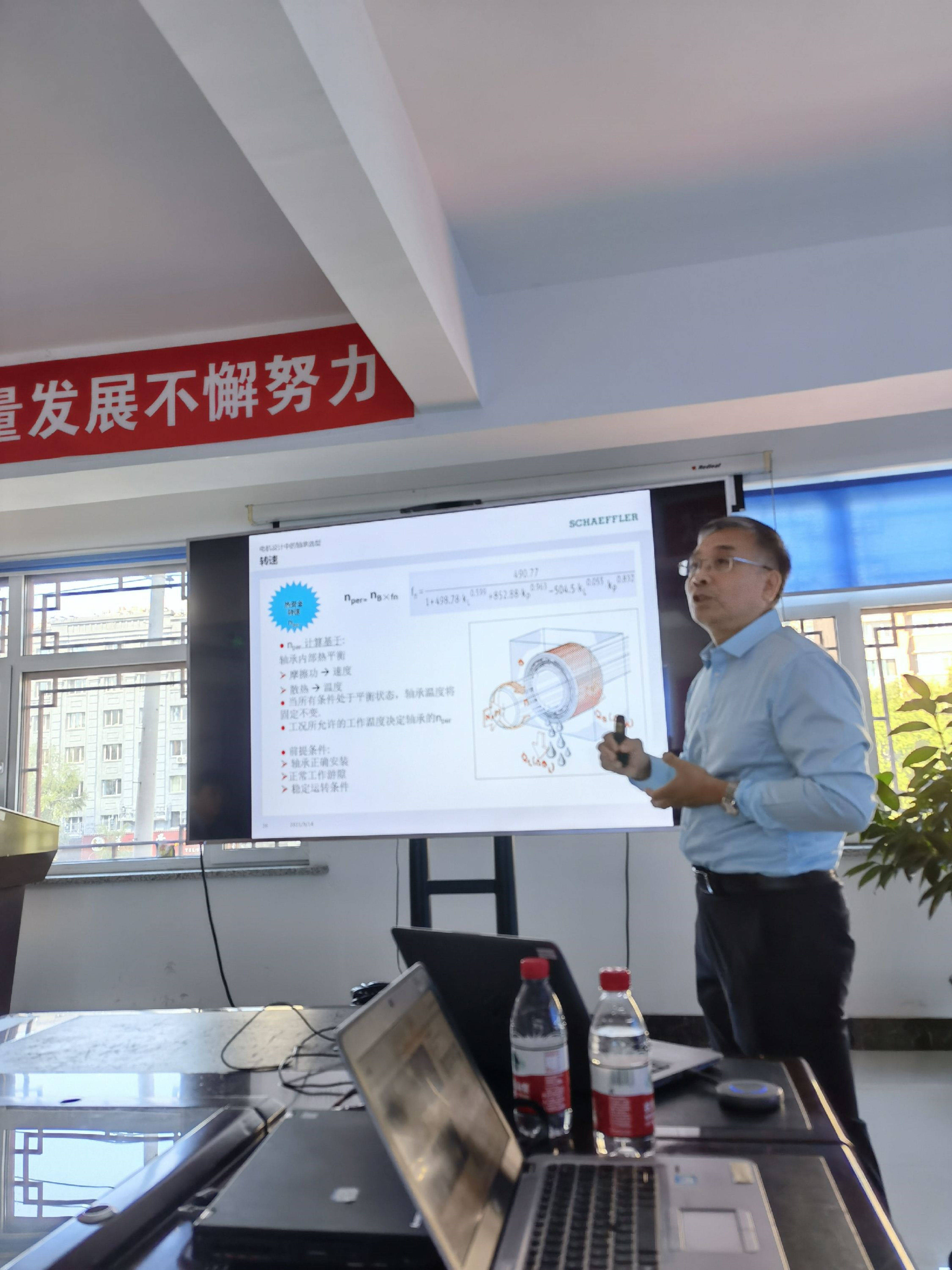 2021年9月14日我公司應佳木斯電機股份有限公司邀請舉行專場FAG軸承技術交流會議。在舍弗勒(上海)貿易有限公司鼎力支持下張明義 、張之濱、劉元朋三位高級工程師出席技術交流會議并做相關技術培訓。佳木斯電機股份有限公司設計部、工藝部、質檢部等各部門科室領導共七十余人參加會議。