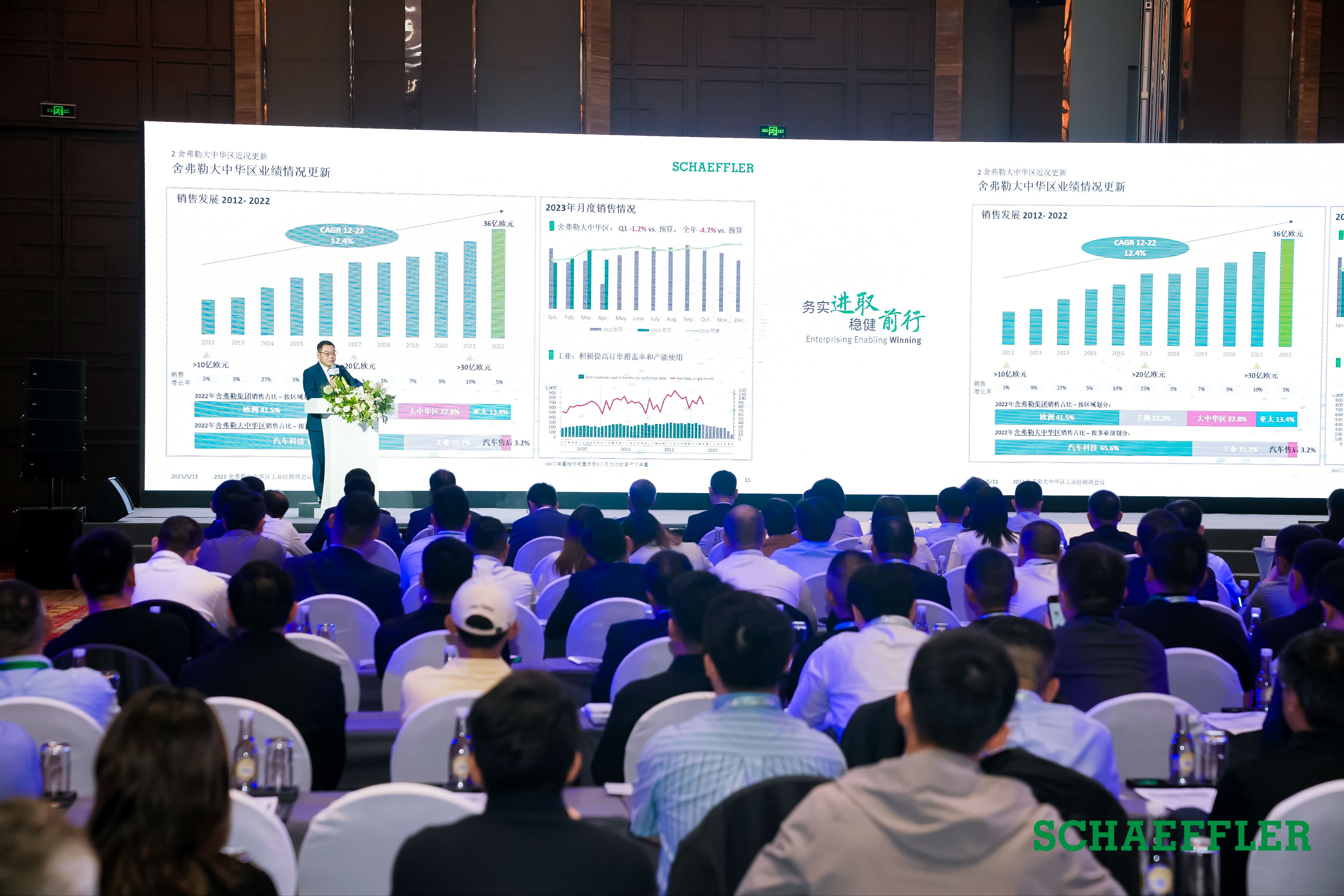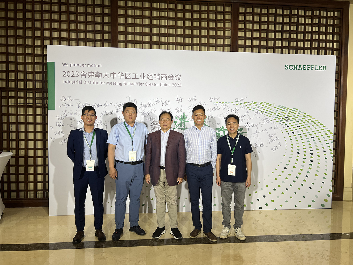 5月10日-12日,2023舍弗勒大中華區工業經銷商會議在昆明圓滿召開。本次大會以“務實進取 穩健前行”為主題,共話行業未來,共謀合作發展。昂特科技應邀出席,榮獲年度卓越經銷商。公司董事長鄧建英、總經理鄧永開、市場部總監梁浩、 上海市場部經理王浩參加活動。